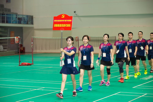 深圳市工商聯(lián)黨組成員、深圳市非公黨委專職副書記王曙彩致辭時表示,在中國共產(chǎn)黨成立98周年即將來臨之際,各直屬黨組織歡聚在南山文體中心,通過舉辦“黨建杯”羽毛球賽的方式迎接黨的生日,非常有意義。