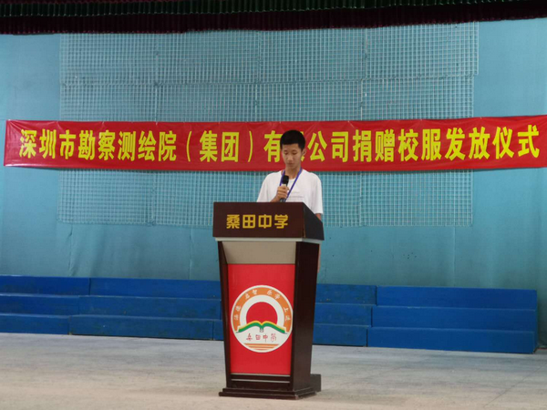 2020年9月24日,秋風送爽,丹桂飄香,桑田中學的校園里一片生機盎然,深圳市勘察測繪院(集團)有限公司捐贈校服發(fā)放儀式在桑田中學欽耀禮堂舉行,儀式由陳堅煊副校長主持。