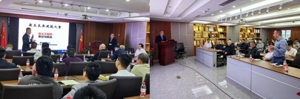 講座開始,丘建金大師對(duì)孫宏偉教授的到來(lái)表示熱烈歡迎,并指出我們遇到的很多巖土工程問(wèn)題,尤其是地基基礎(chǔ)問(wèn)題與結(jié)構(gòu)問(wèn)題息息相關(guān),希望我們的巖土工程師通過(guò)這次講座加深對(duì)于結(jié)構(gòu)問(wèn)題的理解。