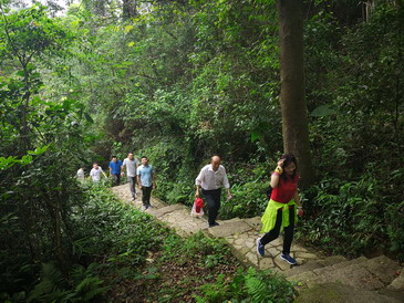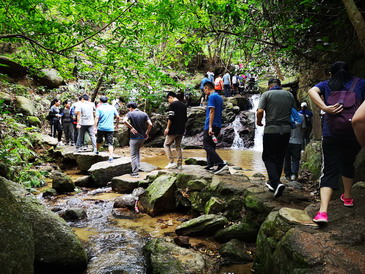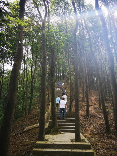 登山途中,林木蒼翠,鳥雀啁啾,空氣清新,大家三五結(jié)伴,談笑風生,至坡度陡峭處,伴隨著強烈的心肺活動,相互間的一聲“加油”,是同事間的關(guān)愛與鼓勵。山路婉轉(zhuǎn)、泉瀑參差,更增添了登山途中穿山涉水、曲徑通幽之趣。登至山頂,每個人臉上洋溢著勝利的喜悅,那些疲憊,隨山風散盡。