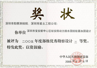 深勘是深圳市最早具有工程勘察綜合甲級資質(zhì)的單位之一,可承接各類建設(shè)工程項目的巖土工程設(shè)計與咨詢工作。1981年成立至今,深勘集團(tuán)完成了巖土工程設(shè)計咨詢項目達(dá)幾千項,榮獲工程獎項百余項,其中國家、行業(yè)級獎項十余項以及多項專利。