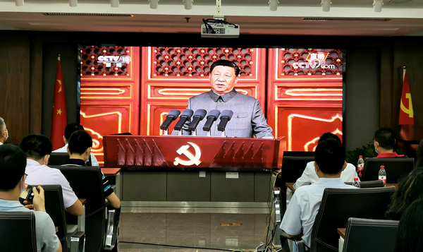 會(huì)上,中共中央總書記、國家主席、中央軍委主席習(xí)近平發(fā)表重要講話,回顧中國共產(chǎn)黨百年奮斗的光輝歷程,展望中華民族偉大復(fù)興的光明前景。習(xí)總書記言辭慷慨激昂、催人奮進(jìn),線上、線下掌聲熱烈、此起彼伏,全體與會(huì)人員受到了極大的鼓舞與思想洗禮。