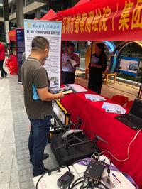 集團(tuán)工作人員對前來咨詢的市民所提出的相關(guān)問題進(jìn)行詳細(xì)解答,并介紹各種儀器設(shè)備在測繪工作中的運用。
