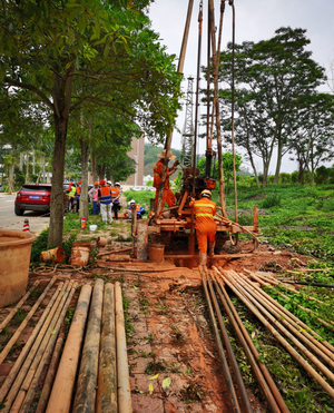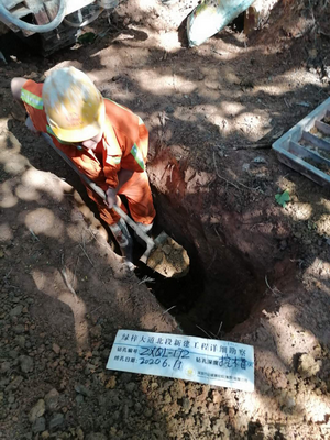 馬路邊作業(yè)現(xiàn)場,各種暗埋的管線多,先人工探挖深度3米,驗收后再下鉆。安全管理比較到位。