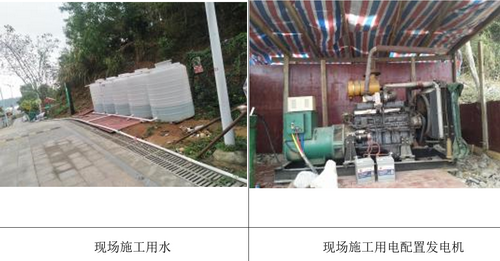 為了解決施工現(xiàn)場無可利用的水源、電源等難題,項目部因地制宜選取上部鹽梅路綠道中點較高位置放置5個集水桶,沿鹽梅路邊(或沿臨時搭設(shè)的施工通道)沿線敷設(shè)臨時用水管,分支給海濱棧道路面養(yǎng)護及石材鋪貼使用。用電使用小型移動式發(fā)電機,設(shè)置在鹽梅路綠道不影響行人的范圍,共用3臺發(fā)電機以滿足現(xiàn)場施工要求。