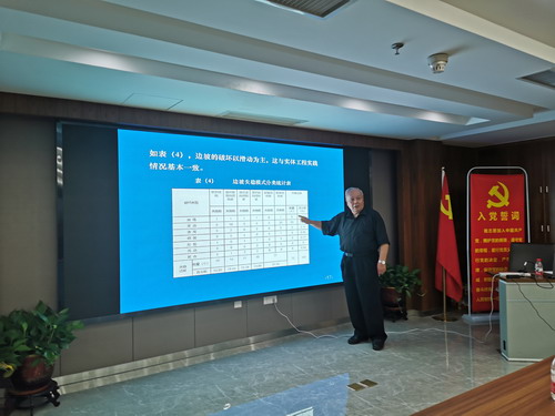 在互動與答疑環(huán)節(jié)中,張曠成大師、溫科偉博士等業(yè)內(nèi)專家與何教授就巖土工程現(xiàn)階段未解決的本構(gòu)問題進行了探討;對于何教授提出的殷切期望和建議,唐偉雄總經(jīng)理作出了積極回應并要求各單位開展自己專業(yè)的學術(shù)研究和統(tǒng)計歸納課題;基礎公司副總經(jīng)理李亮輝分享了在何教授座下學習工作的經(jīng)歷,強調(diào)了要學以致用,要多下工地,在勘察、設計、施工一體化的趨勢下,培養(yǎng)綜合技術(shù)人才。現(xiàn)場氛圍高漲,細雨潤物無聲,大家如置身學堂。講座不間斷持續(xù)兩個多小時,聽取講座的專業(yè)技術(shù)人員受益匪淺。