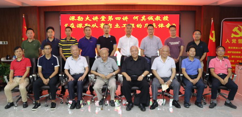 在祖國70華誕之際,深勘大講堂迎來第四期,特邀集團技術(shù)顧問何其誠教授做《在深勘從事巖體工程的幾點體會》學術(shù)交流講座。集團董事長蔡衍鉆、總經(jīng)理唐偉雄、副總經(jīng)理路曉波、國家首批勘察大師張曠成、省勘察大師李愛國博士、深圳市巖土工程有限公司董事長溫科偉博士以及各專業(yè)技術(shù)人員聽取了講座。