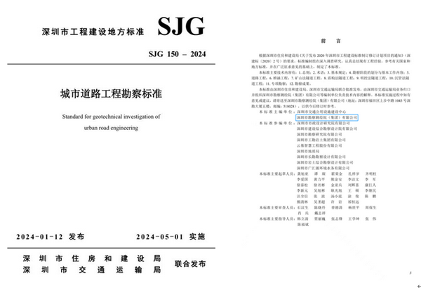 近日,經(jīng)深圳市住房和建設(shè)局、深圳市交通運(yùn)輸局聯(lián)合批準(zhǔn),由深圳市交通公用設(shè)施建設(shè)中心和深勘集團(tuán)牽頭編制的深圳市工程建設(shè)地方標(biāo)準(zhǔn)《城市道路工程勘察標(biāo)準(zhǔn)》SJG 150-2024(以下簡稱《標(biāo)準(zhǔn)》)正式發(fā)布。