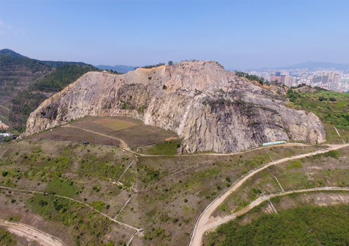 水徑余泥渣土受納場高邊坡所在地隸屬于深圳市龍崗區(qū)吉華街道,位于清平高速西側(cè)、郁南環(huán)境園北側(cè),該高邊坡為采石場開挖形成的裸露巖土質(zhì)混合邊坡,邊坡坡腳線長約685.8m,坡高30.66m~103.8m,坡度35°~79°。整治總面積約為0.45平方公里。本邊卻步采用坡率法對邊坡進行治理,通過分級放坡開挖,可適當輔以錨桿格構(gòu)梁加以支護,完善邊卻步截排水系統(tǒng),對分級邊坡進行生態(tài)覆綠,并配以綠化滴灌系統(tǒng),通過多種措施對邊坡進行綜合治理,達到治理目的,提升景觀。項目獲得深圳市勘察設(shè)計行業(yè)協(xié)會優(yōu)秀項目一等獎和廣東省城鄉(xiāng)規(guī)劃設(shè)計優(yōu)秀項目二等獎。