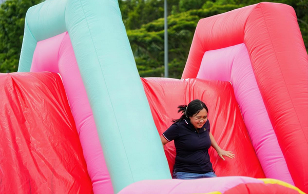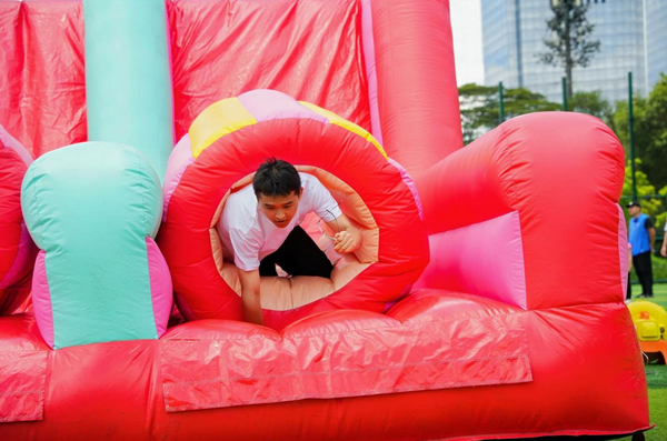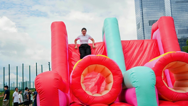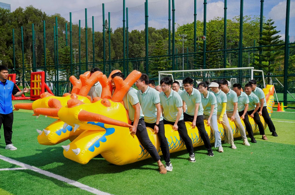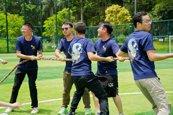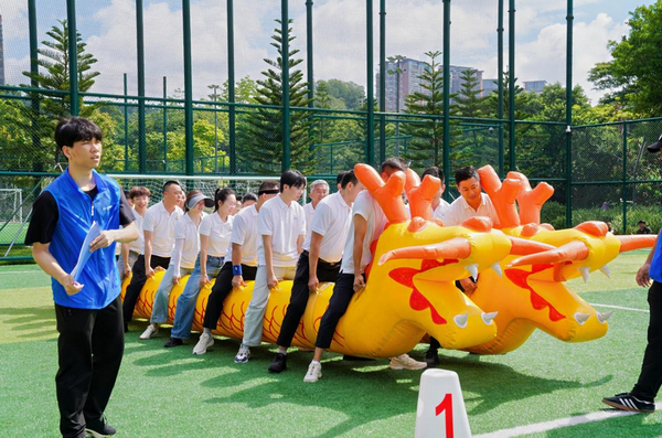 熱力引擎在歡呼聲中轟然啟動(dòng),專業(yè)教練帶領(lǐng)的“深勘Disco”熱身舞引爆全場(chǎng)!隨后的競(jìng)技環(huán)節(jié)妙趣橫生:“雙龍戲珠”的長龍?jiān)陉?duì)員的默契配合下極速前進(jìn);“智勇大闖關(guān)”里平日細(xì)心嚴(yán)謹(jǐn)?shù)墓こ處焸兓砻艚萦率?,在充氣城堡中健步如飛;壓軸登場(chǎng)的“同心拔河”則是力量與協(xié)作的終極較量,令賽場(chǎng)再次沸騰,場(chǎng)邊啦啦隊(duì)的掌聲和吶喊,都化作這個(gè)夏日里最清涼的樂章。