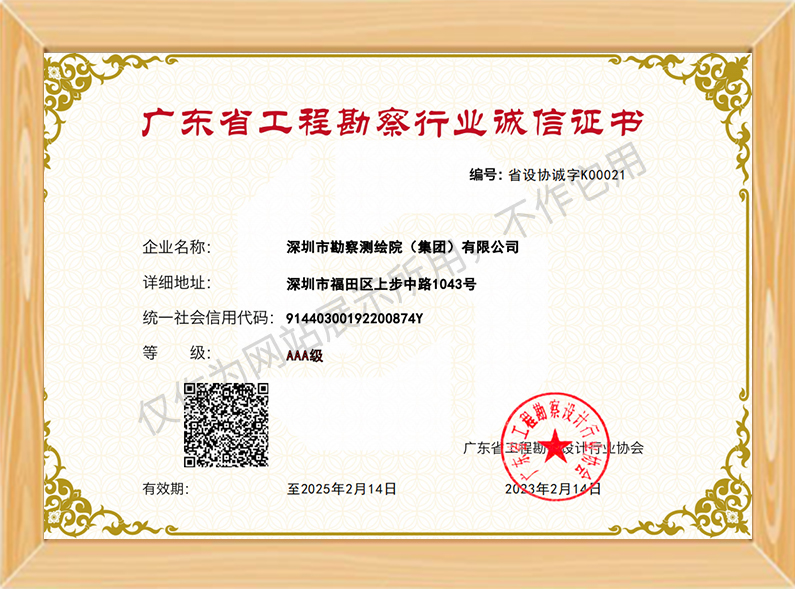 2023年2月AAA級廣東省工程勘察行業(yè)誠信證書