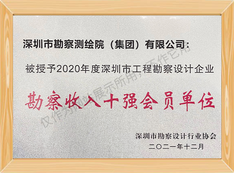 2021年12月2020年度深圳市工程勘察設(shè)計企業(yè)勘察收入十強會員單位