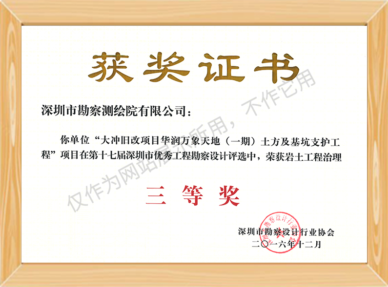 2016.12大沖舊改華潤萬象天地(一期)土方及基坑支護(hù)治理-市三等